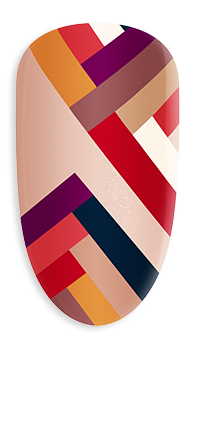 - Create thick lines that weave in and out from one another with CND™ SHELLAC™ Among the Marigolds, CND™ SHELLAC™ Violet Rays and CND™ SHELLAC™ Mind Over Matcha. Cure for one minute using preset button 2S. Repeat for additional coverage.
